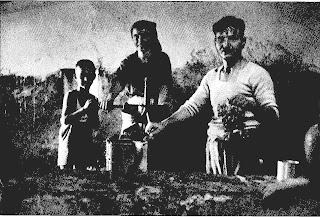 Πατητήρι στην Κερατέα το 1957. Από αριστερά: Πολυχρόνης Δελίδης, Μηλίτσα (Λιάπη) Αθανασίου, Γεώργιος Κατσίκης |